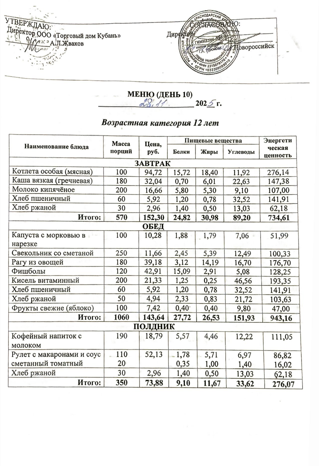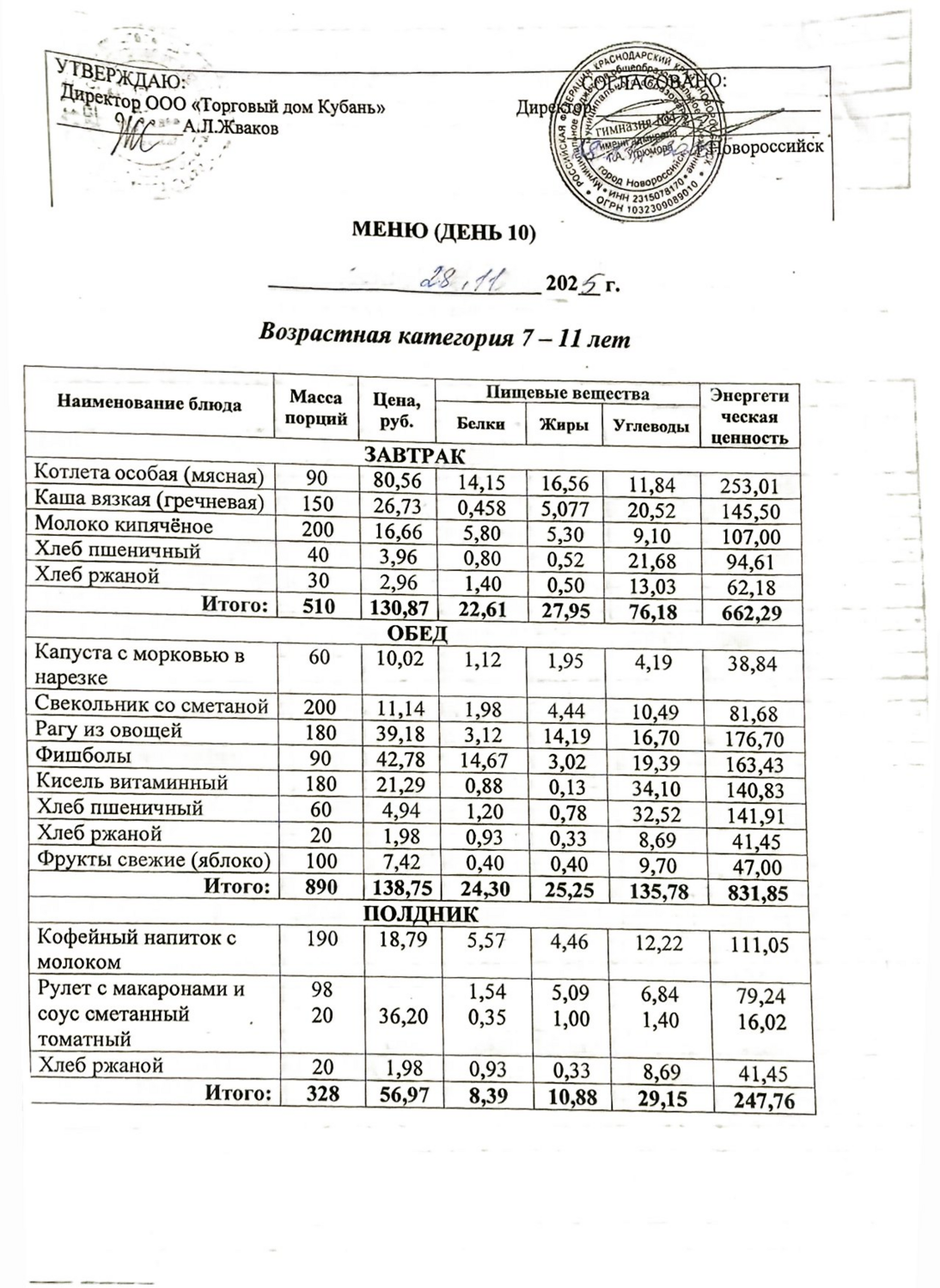 Меню 28.11.2025